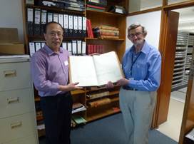 左:孙春林教授等访问昆士兰博物馆标本库;右:孙春林教授与澳大利亚同行观察标本